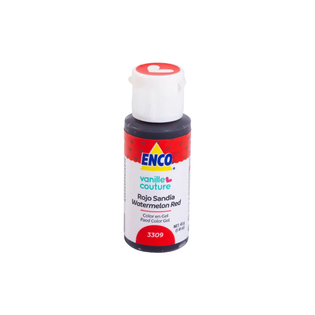 El Colorante en Gel ENCO Rojo Sandía está formulado para aportar un tono rojo con matiz rosado, inspirado en el color natural de la pulpa de la sandía. Es ampliamente utilizado en repostería moderna, decoraciones veraniegas, temáticas frutales y diseños juveniles, donde se busca un rojo vivo pero ligero.