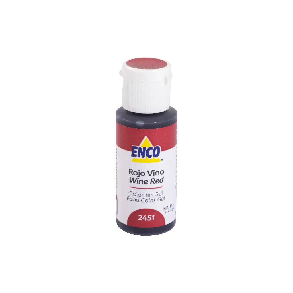 El Colorante en Gel ENCO Rojo Vino está formulado para aportar un tono rojo oscuro con matiz vino, ideal para decoraciones sofisticadas, repostería elegante y acabados premium. Es la elección perfecta cuando se busca un rojo profundo y sobrio, diferente de los rojos brillantes o de alta intensidad.