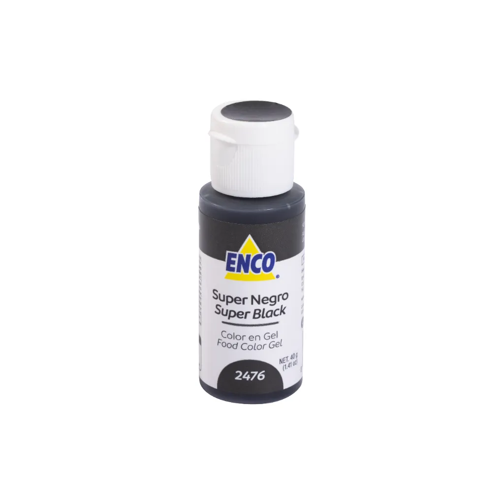 El Colorante en Gel ENCO Super Negro está formulado para ofrecer un negro ultra intenso y estable, diseñado especialmente para reposteros profesionales que requieren resultados rápidos, uniformes y profundos, incluso en grandes volúmenes de producción.