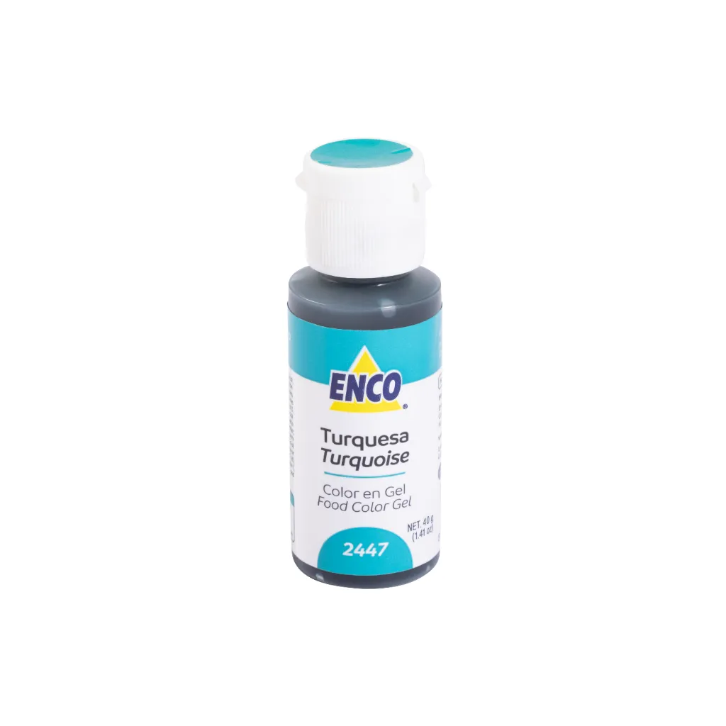 El Colorante en Gel ENCO Turqueza está formulado para aportar un tono azul verdoso fresco y luminoso, ampliamente utilizado en decoraciones tropicales, repostería moderna y temáticas marinas. Es la opción ideal cuando se busca un color intermedio entre azul y verde, diferente de los azules tradicionales.